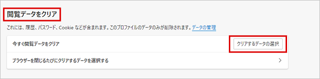 3.「閲覧データをクリア」の設定にある「クリアするデータの選択」をクリックします。