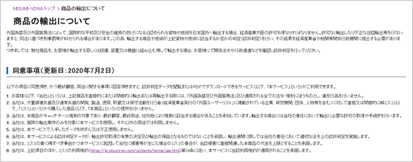 トップページの「技術情報・環境情報」の中の環境情報「輸出該非判定情報」をクリック