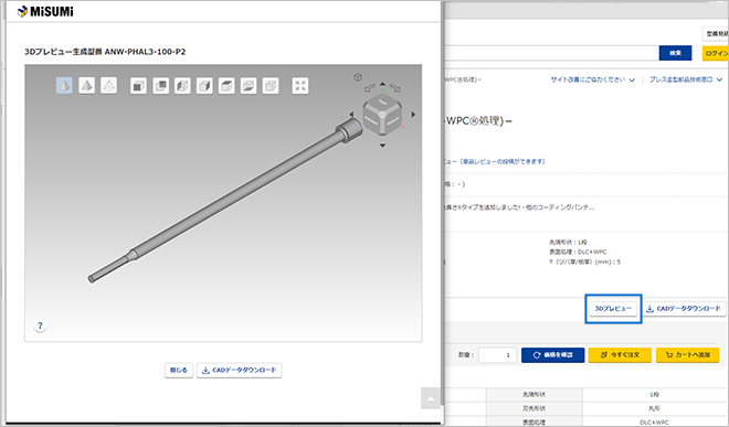 3「CADデータダウンロード」ボタンをクリックしてCADデータをダウンロードする