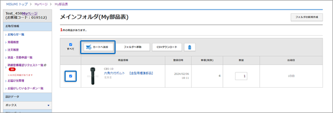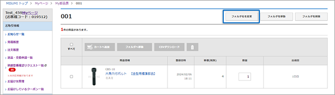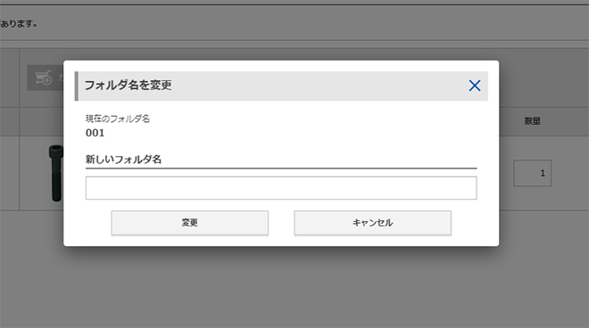 My部品表の中から、名前を変更したいフォルダを選択し「フォルダ名を変更」をクリックします。