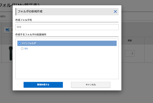 My部品表では、型番等の商品情報を保存し、フォルダで管理をすることができます。
