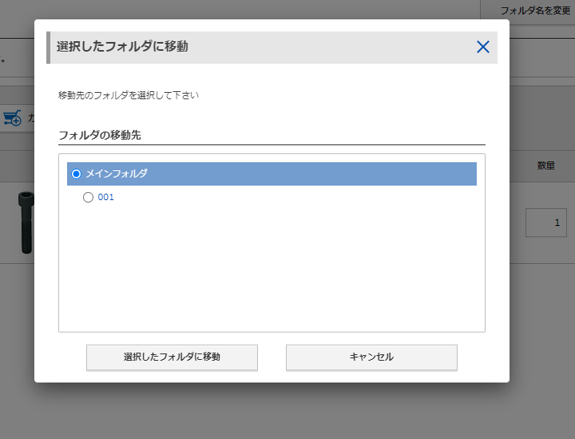移動先のフォルダを選択し、「選択したフォルダに移動」ボタンをクリックすると、選択したフォルダへ商品が移動します。