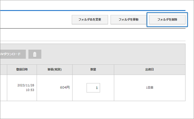 「削除」ボタンをクリックすると、フォルダが削除されます。