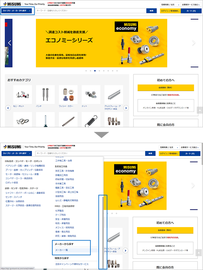 左側メニューの「カテゴリ・メーカーから探す」をクリックすると、カテゴリの一覧が表示されます。