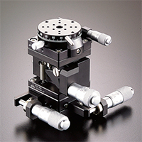 手動ステージで位置決め調整できるのは、前後左右だけではありません。傾斜、回転、更には複数のステージを組合せた多軸ユニットならば、複雑な動きが出来ます。