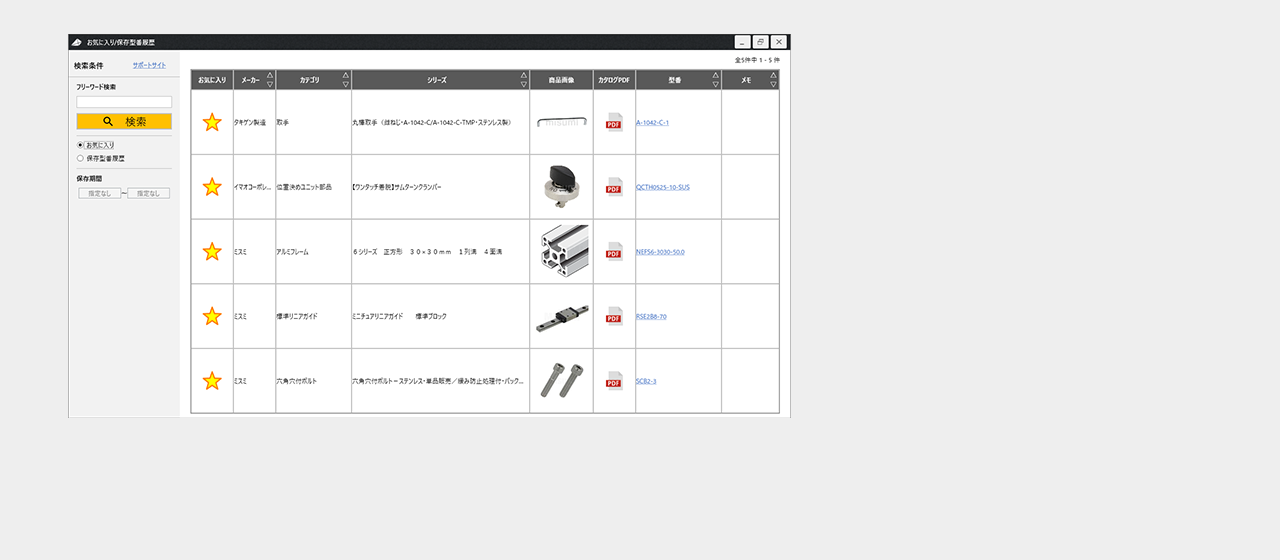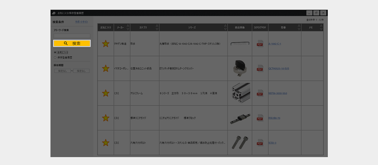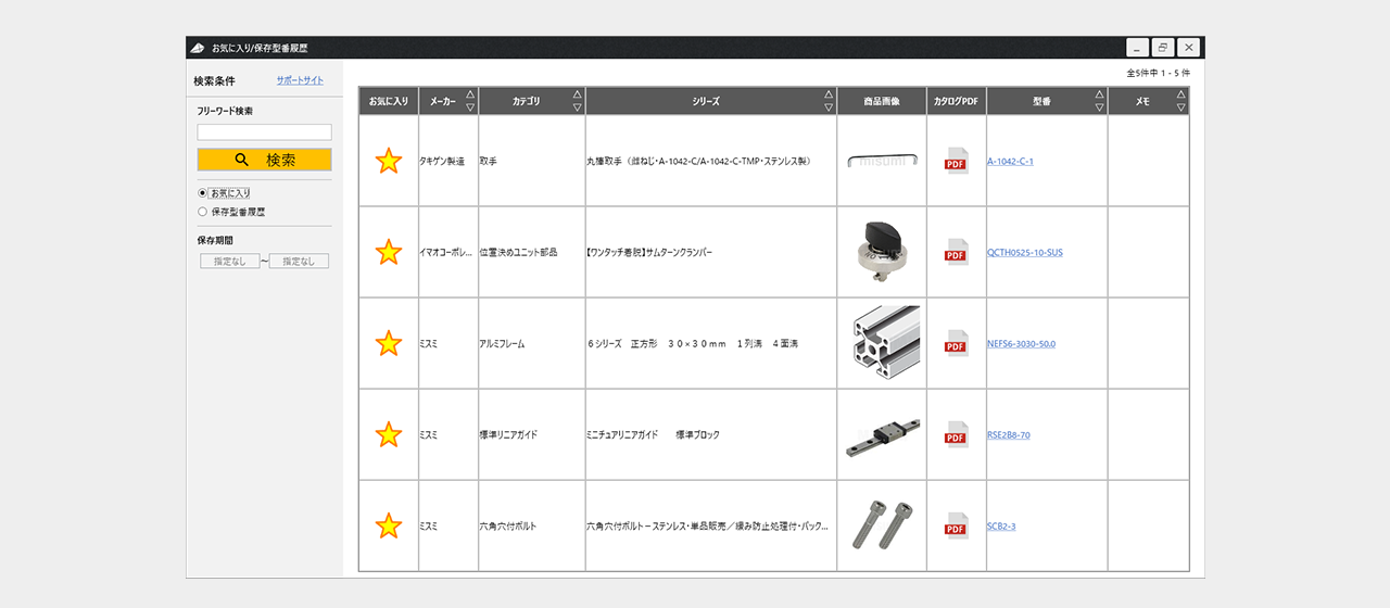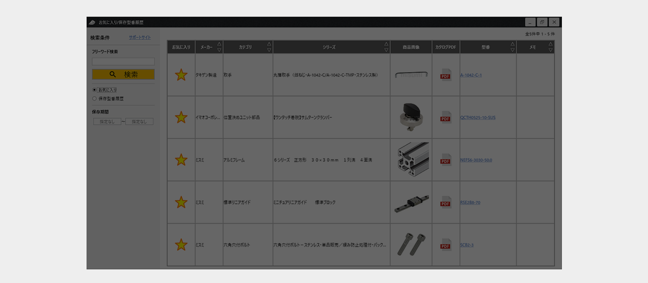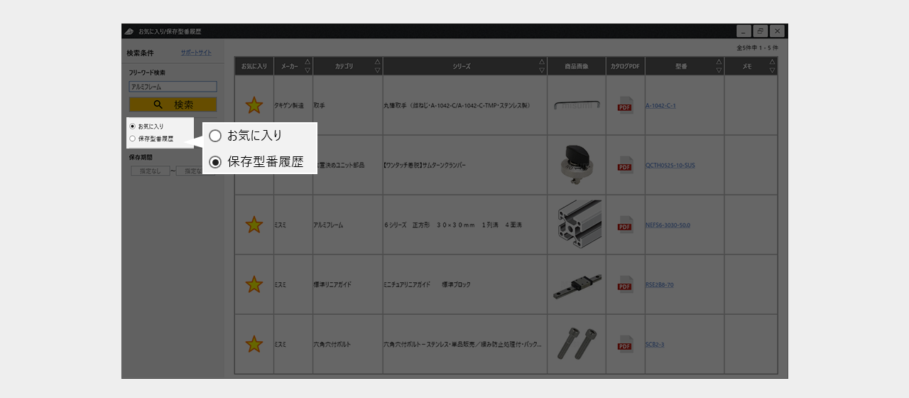 お気に入り/保存型番履歴機能のかんたん操作方法は以上です