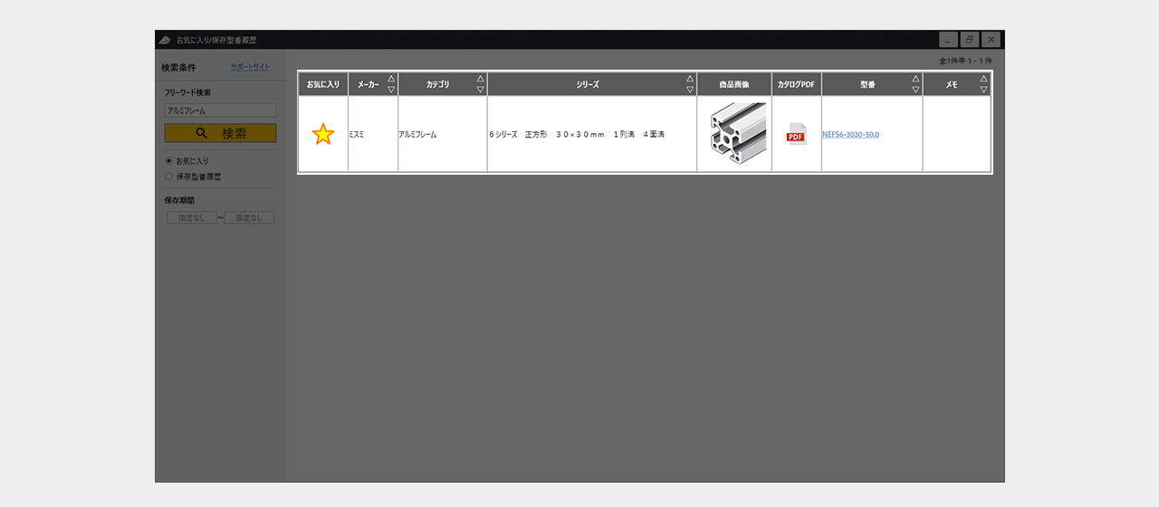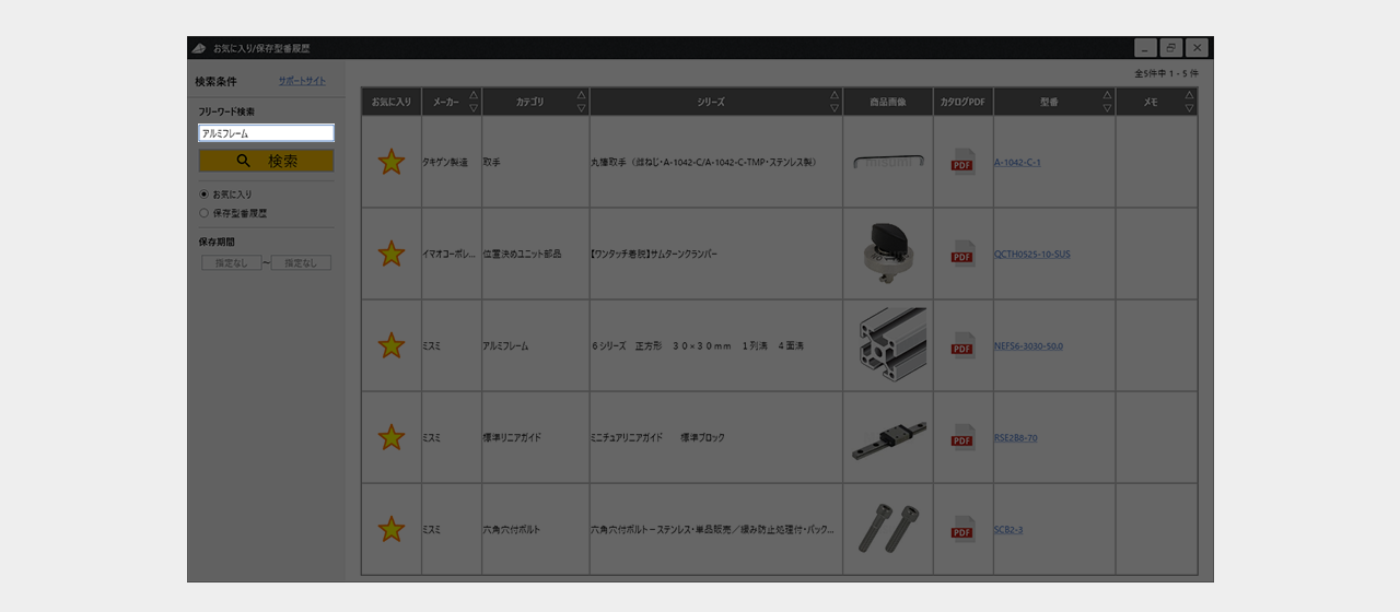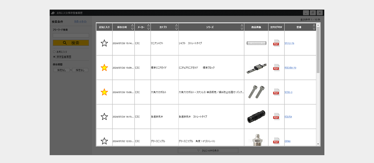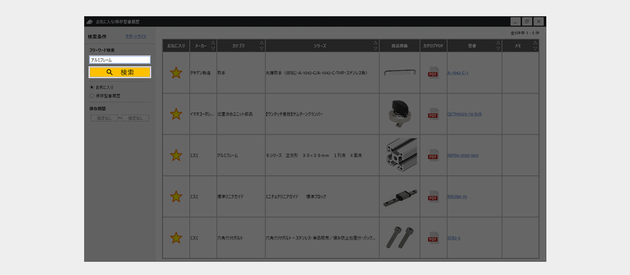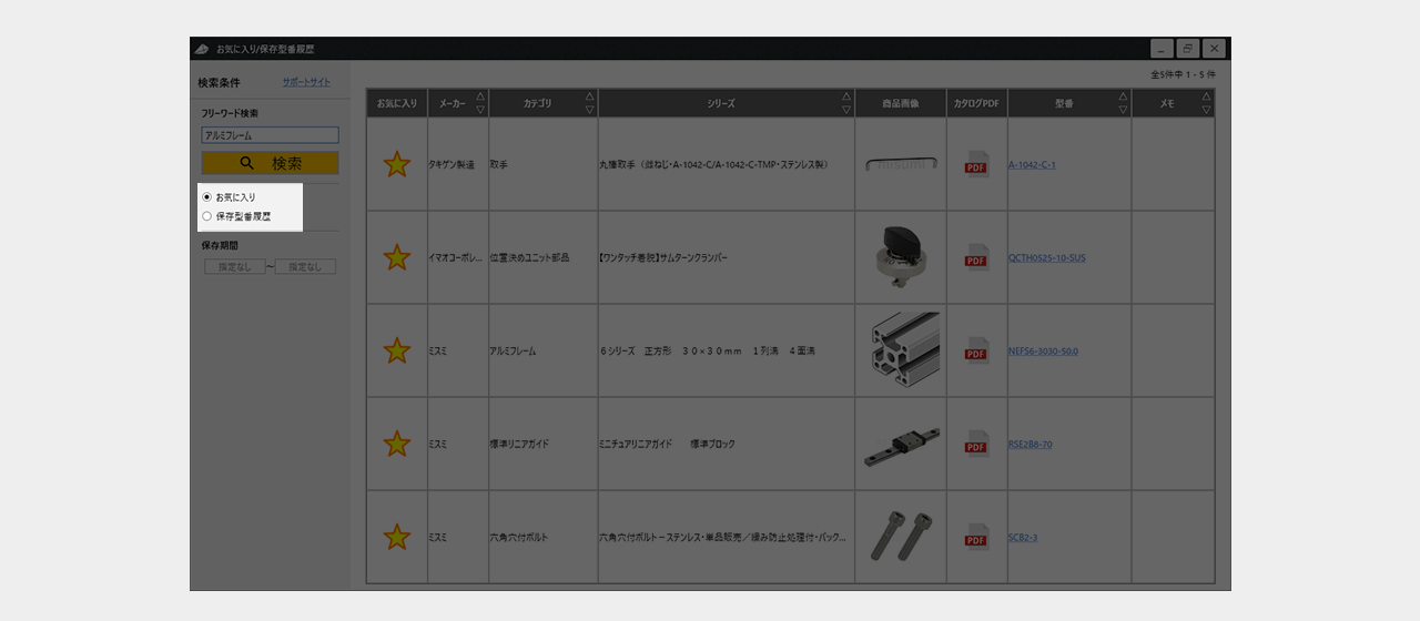 お気に入り/保存型番履歴機能のかんたん操作方法は以上です