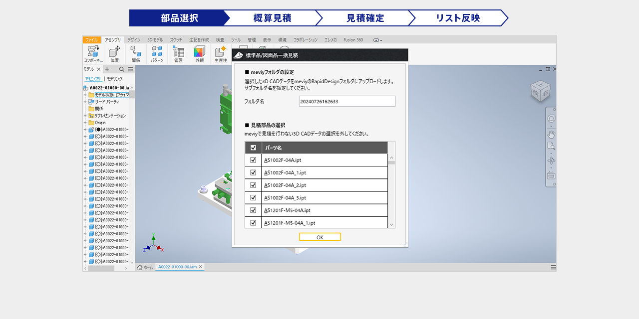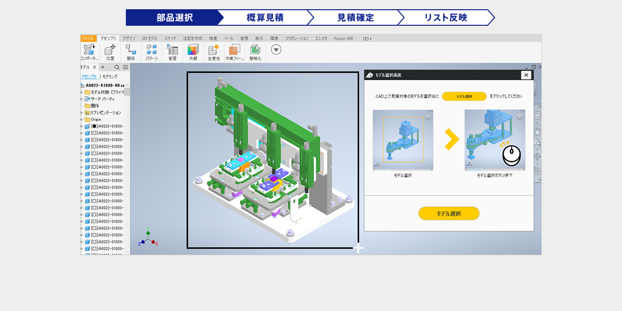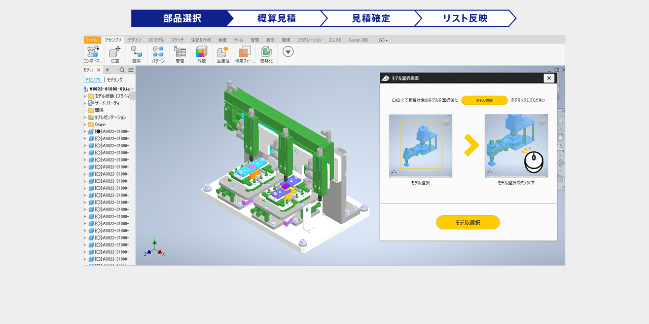 モデル選択ボタンをクリックし、見積もりたい部品を選択