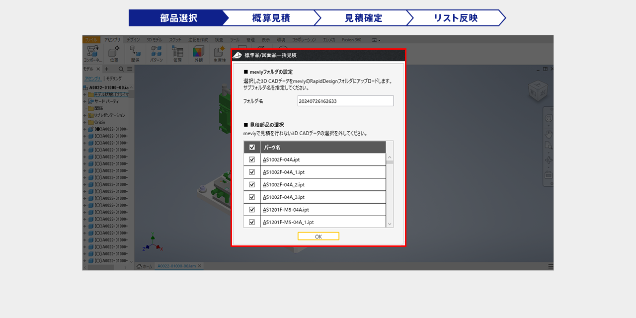 確定後、RAPiD Designへ戻り見積結果をリストに反映