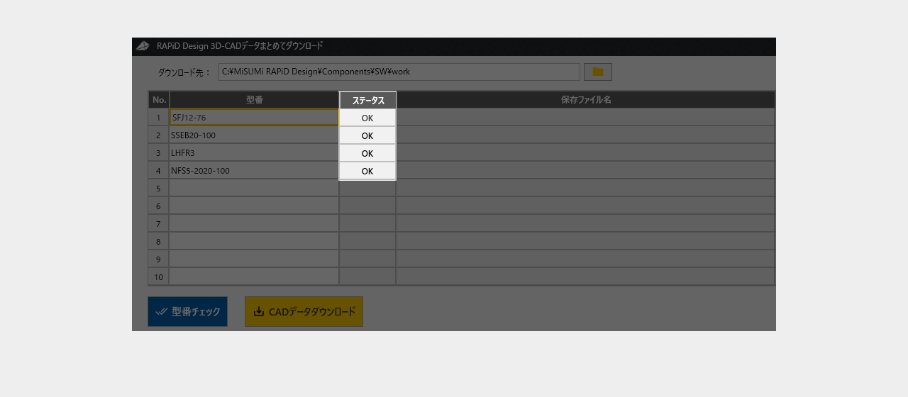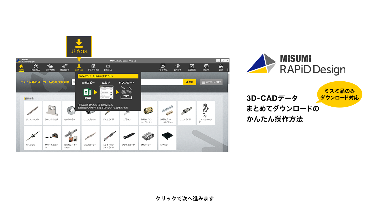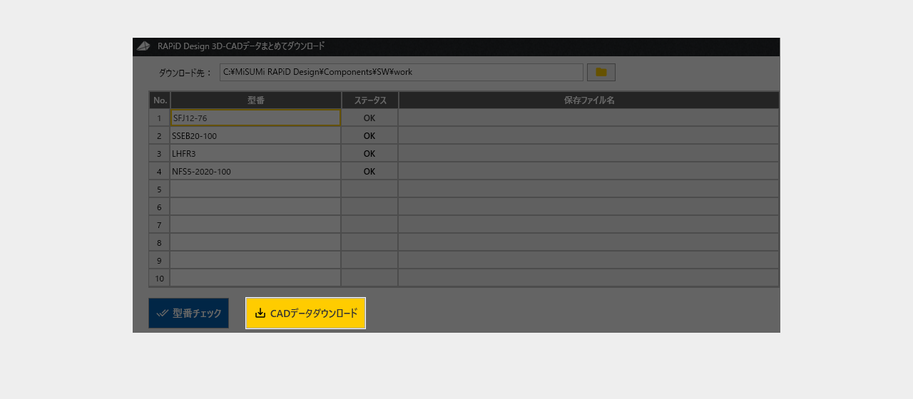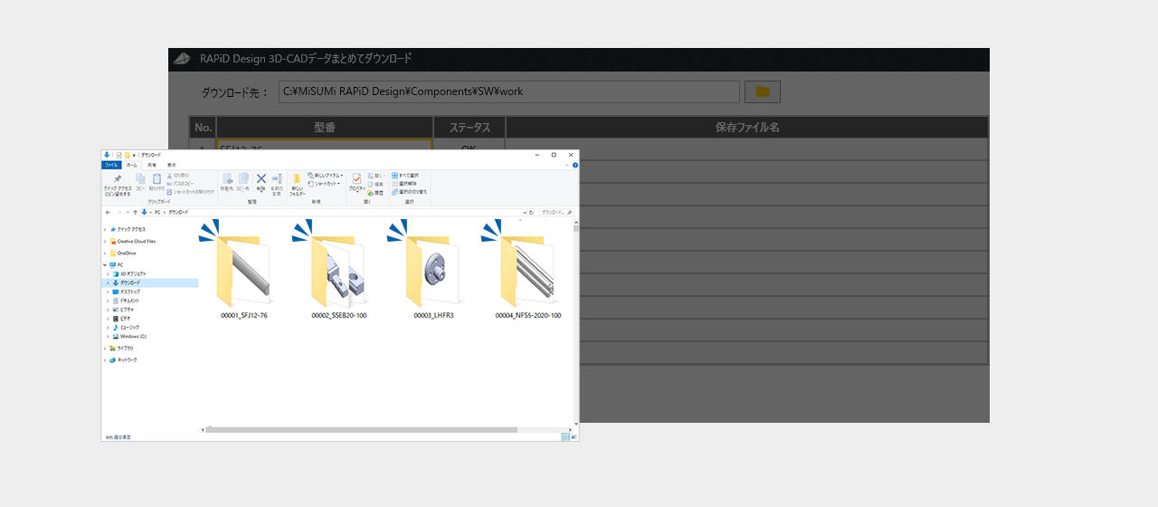 複数の3D-CADデータをまとめてダウンロード可能です
