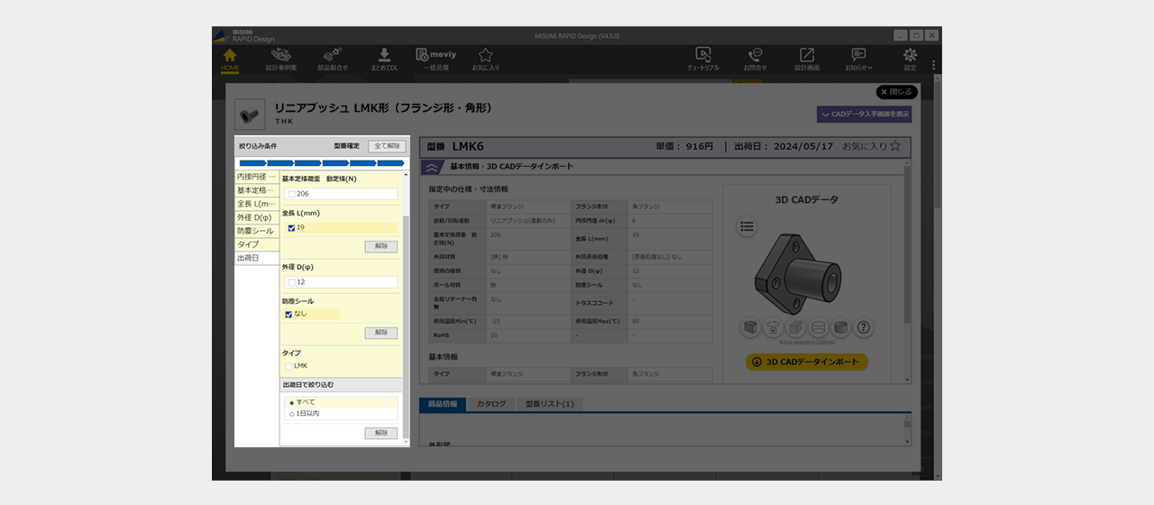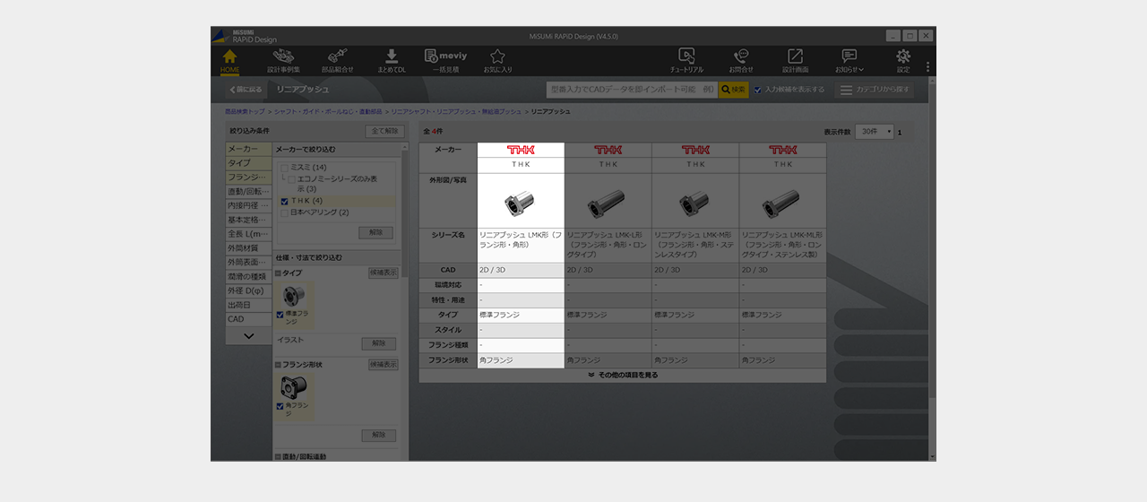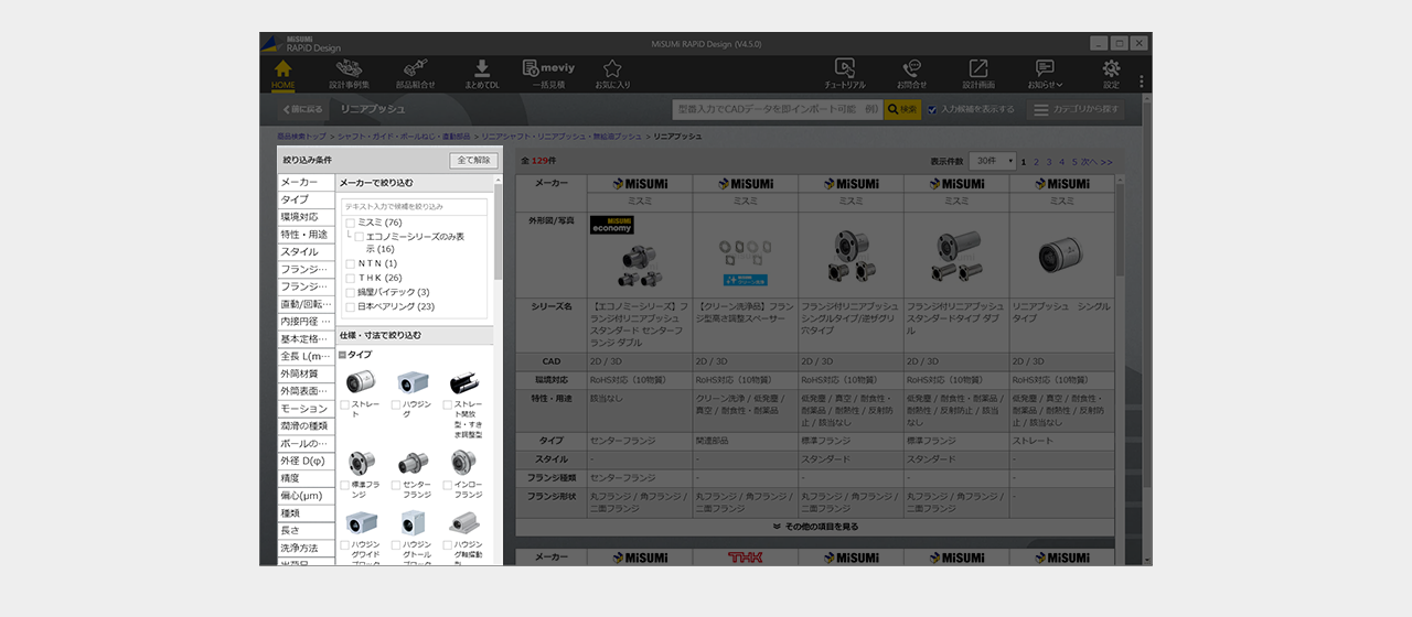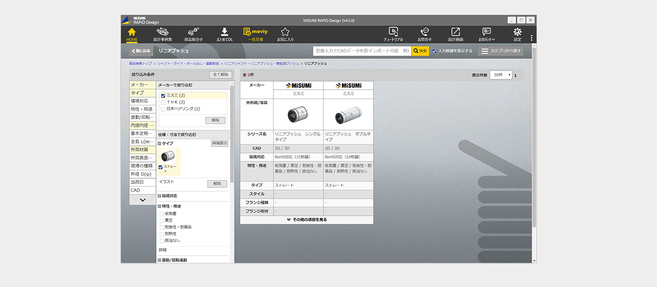 ミスミ以外のメーカー品は検索画面で全ての仕様を選択し型番を確定