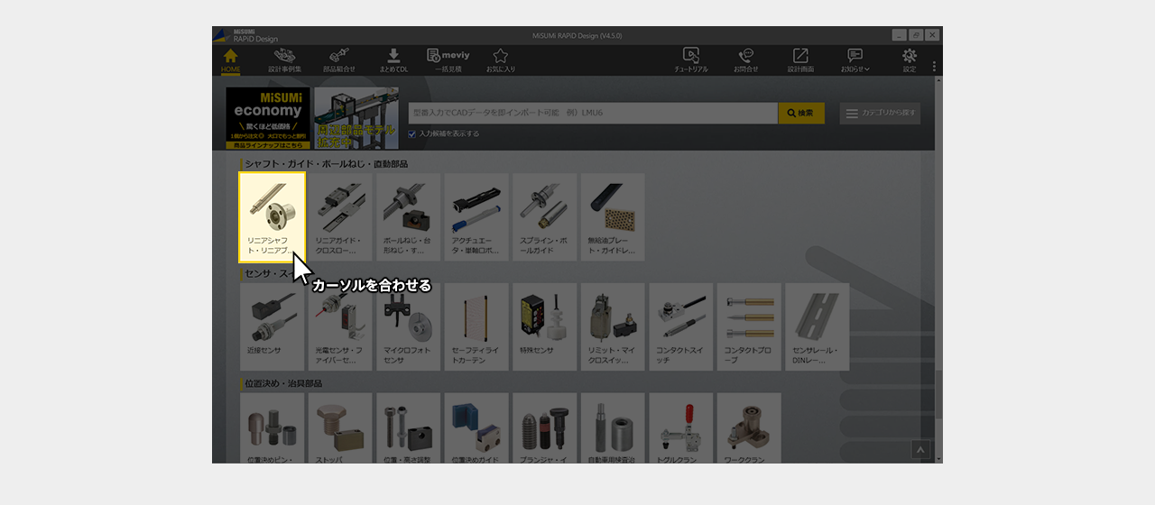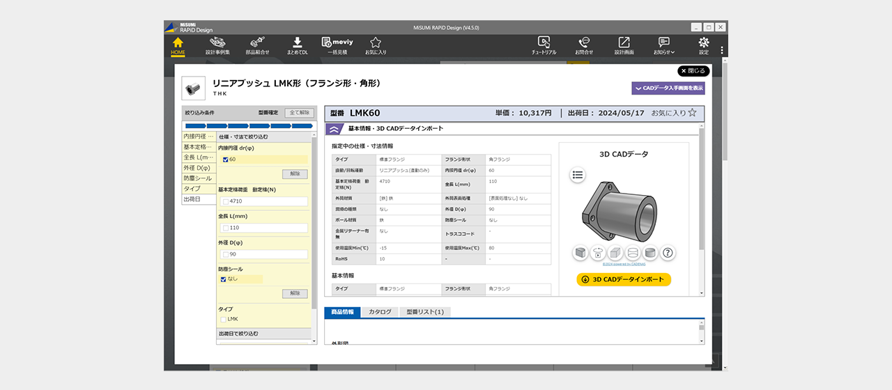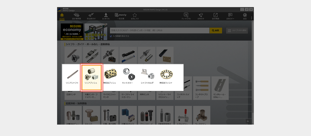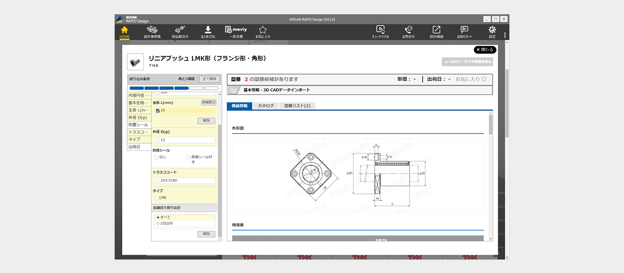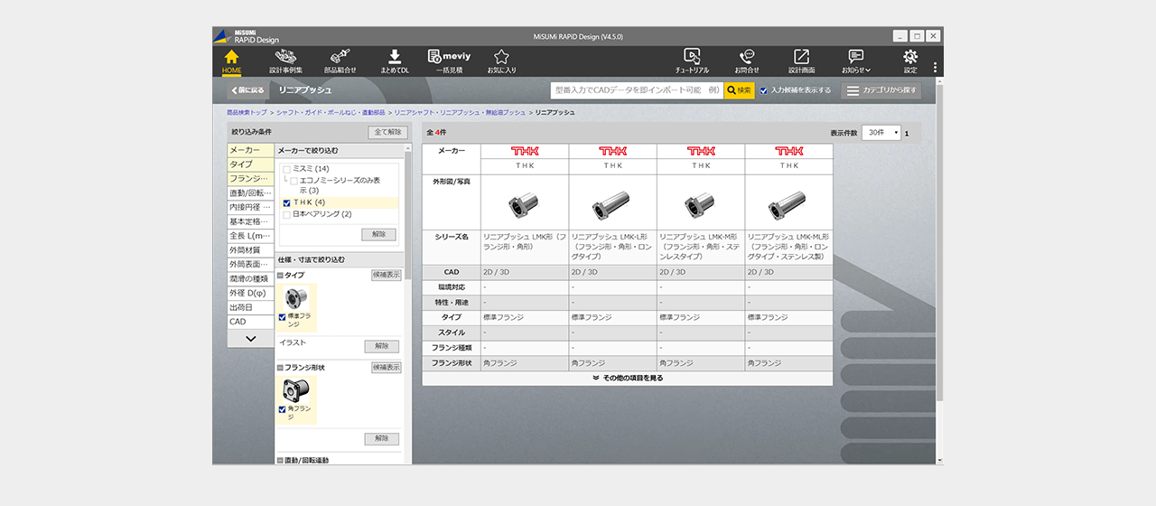 ミスミ以外のメーカー品は検索画面で全ての仕様を選択し型番を確定
