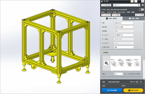 仕様がCADモデルへ反映されます