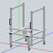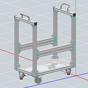 • 従来は市販品を使用していたが、台車重量が重いうえにハンドルの持ち手も小さく、使い勝手が悪かったため、オリジナルの台車を設計した