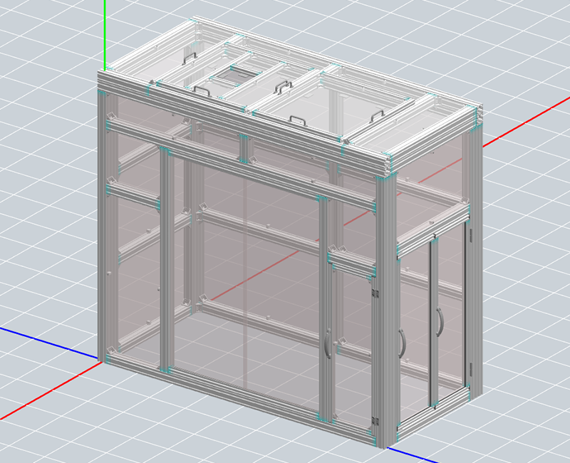 • 既存の装置カバーがアクリル板を立方体形状に並べたシンプル形状のものだったため、新規にアルミフレームでカバーを作成