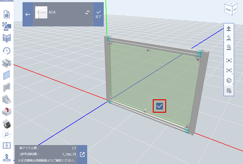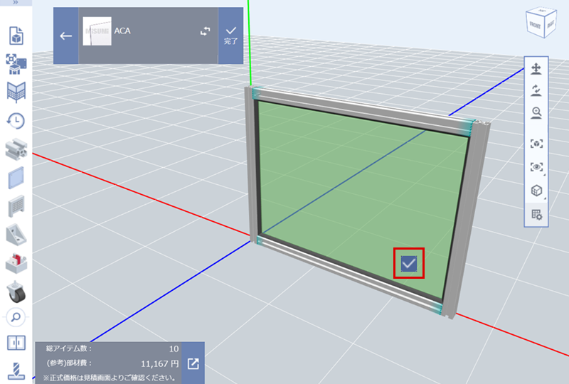 (11)チェック印を押下して完了。パネルの型番が生成されます