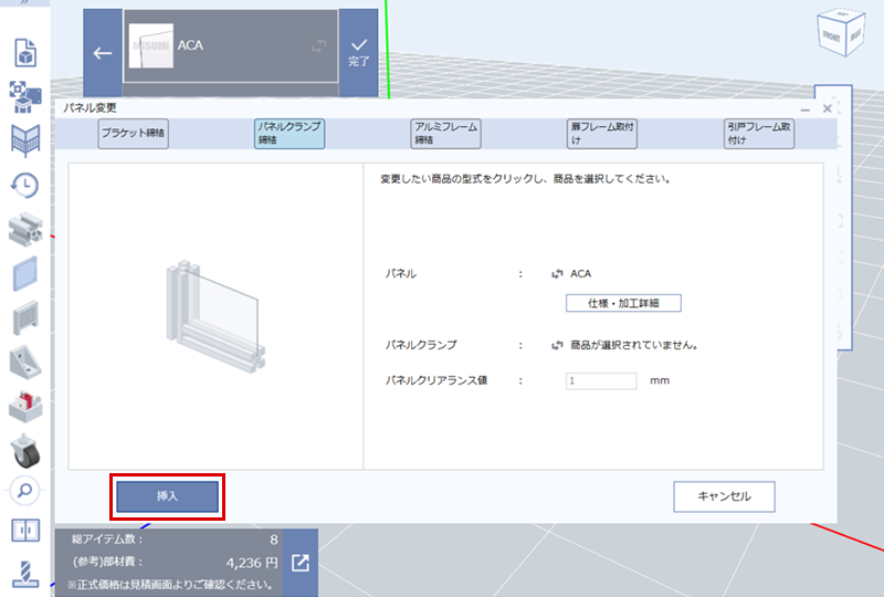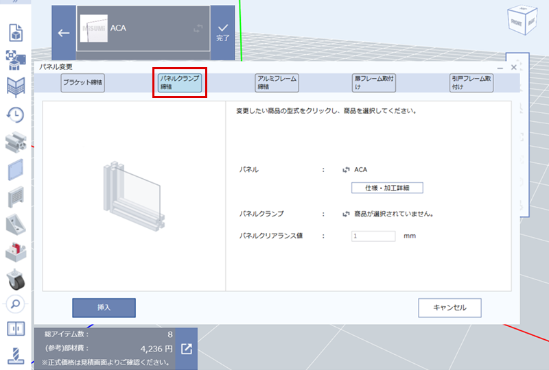 「パネルクランプ締結」を選択