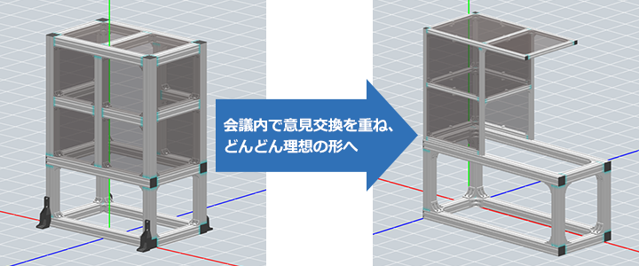 石黒さま 現在では、お客さま先への訪問時にMISUMI FRAMESを開き、その場で3Dモデルを提示しながらフレーム構成や部品を選定しています。