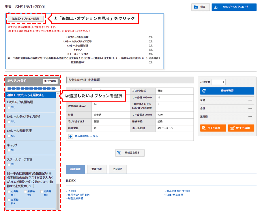 THK商品のご注文の場合は、追加オプションの選択が必要です。